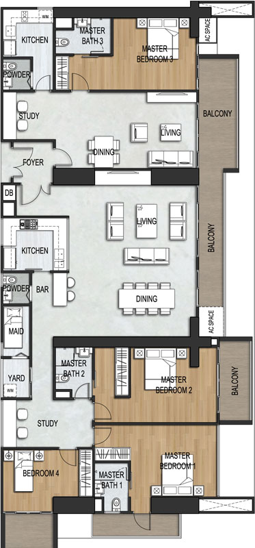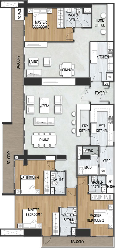 The Deluxe Dual-Key apartment units were designed to resemble two units, so that you can attend to your varied lifestyle needs with ease. The second home can be shared with parents or grown-up children without compromising your own privacy. Alternatively, it also doubles up as a home office or as additional rental revenue. Additional features were introduced to each unit such as Entrance Foyer, Study, Service Yard and AC Ledges/Space.